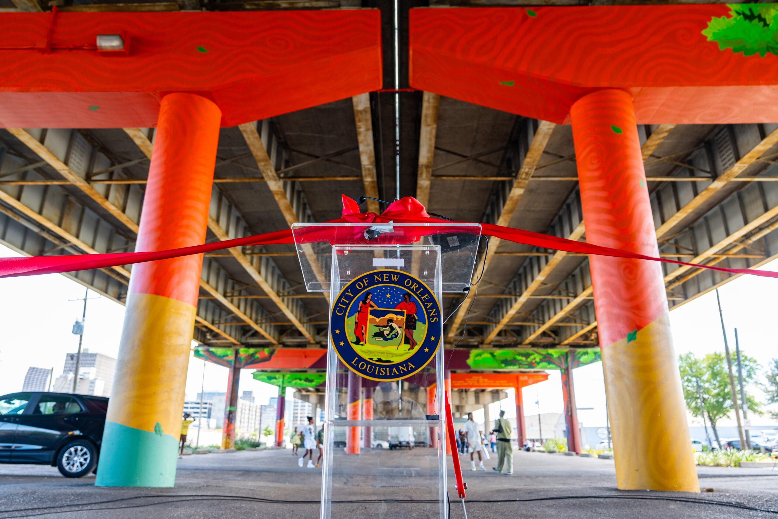 Located at Backatown Plaza in the Claiborne Innovation District, Deeply Rooted was created by Lead Artists Ojo Akinlana and Hoze Dara, with Supporting Artists Rickey Mathieu, Stephen Compton, Jamal Barnes, Noel Dauzart, Zechariah Pierre, and Derrick Bell. Commissioned through the City of New Orleans Percent for Art Program, managed by Arts New Orleans in collaboration with Ujamaa Economic Development Corporation. Through striking color… Read More