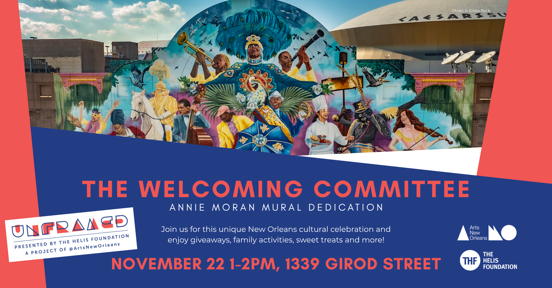 New Orleans’ Premiere Mural Collection Unveils Legacy Artwork: Local artist Annie Moran to dedicate “The Welcoming Committee” mural with community celebration on Saturday, November 22, 1-2 p.m. New Orleans, LA – Unframed presented by The Helis Foundation, a project of Arts New Orleans proudly introduces its 11th large-scale outdoor mural… Read More